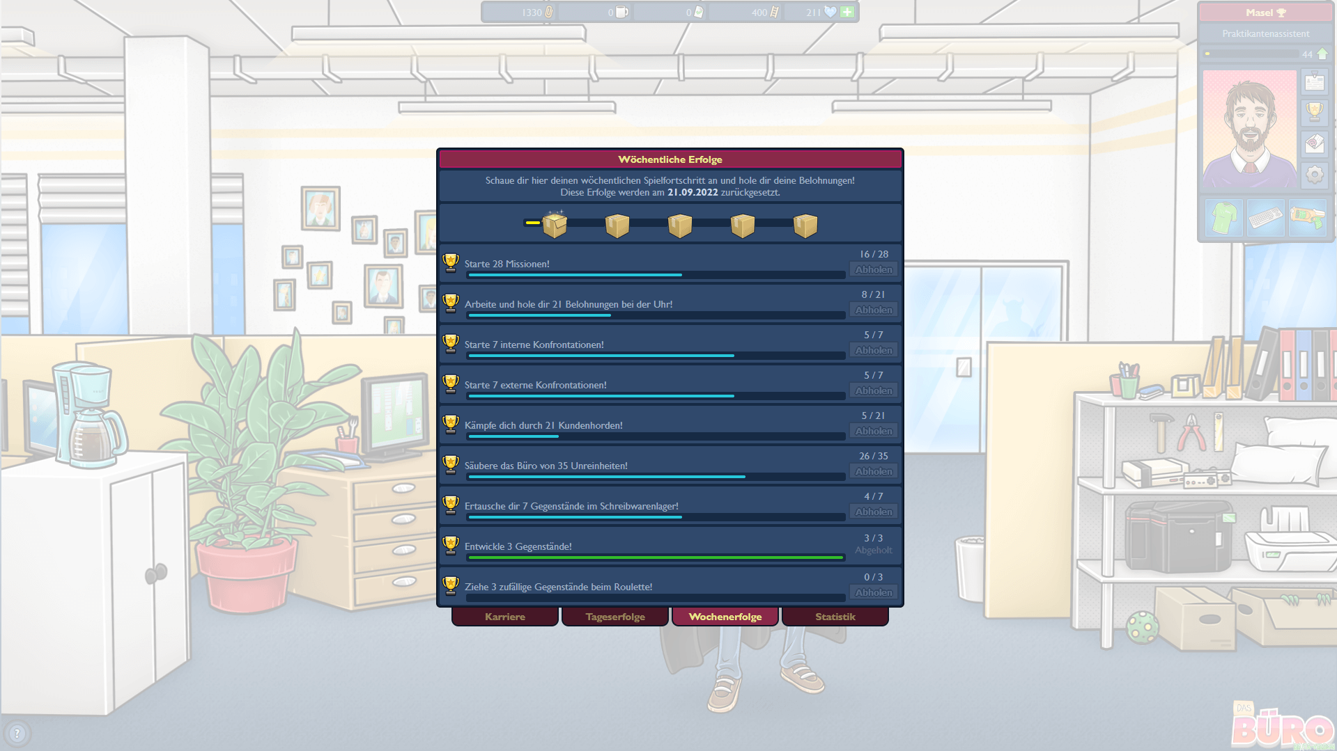 Erledige täglich Aufträge von deinen Vorgesetzen, um Belohnungen zu erhalten.